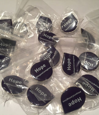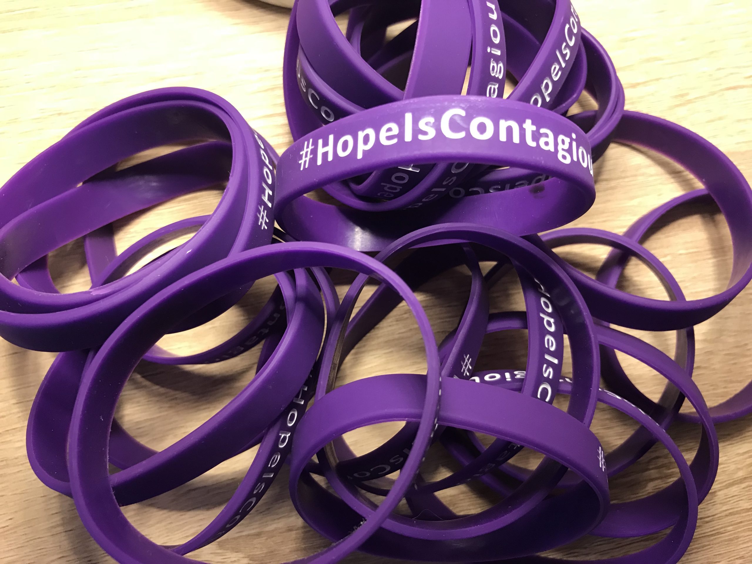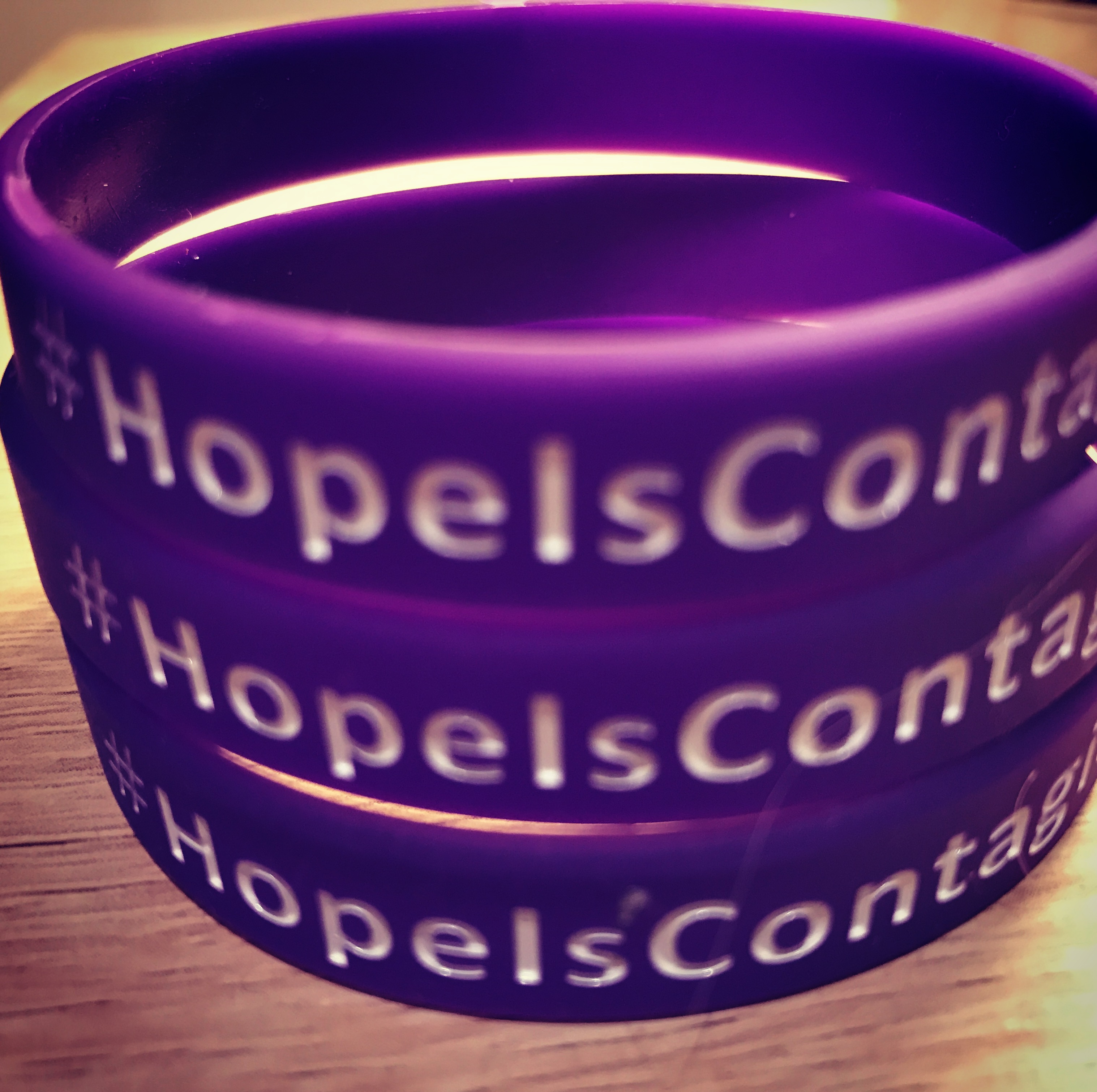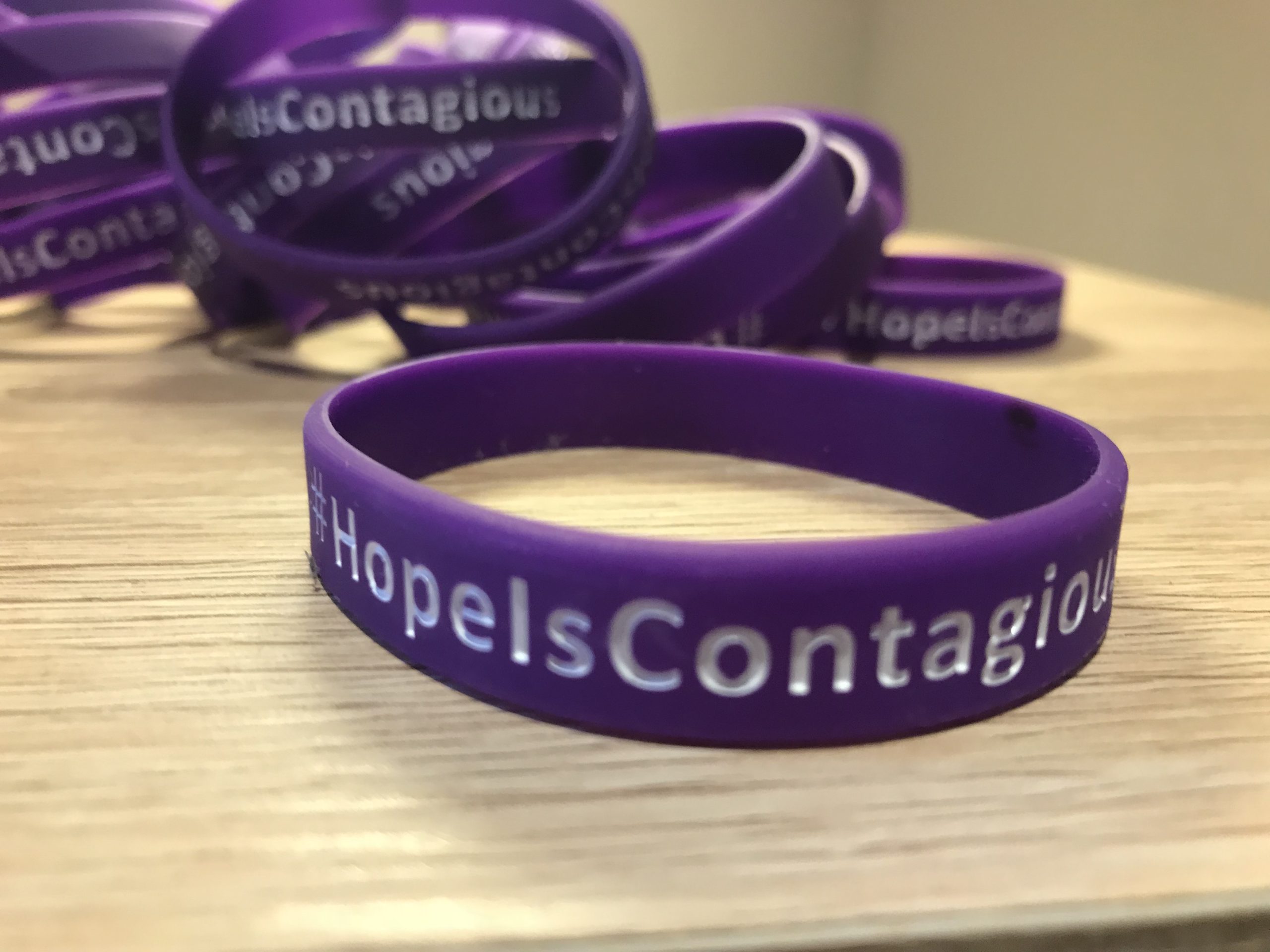 Upon receiving your delivery- you will find a rubber #HopeIsContagious wrist band.